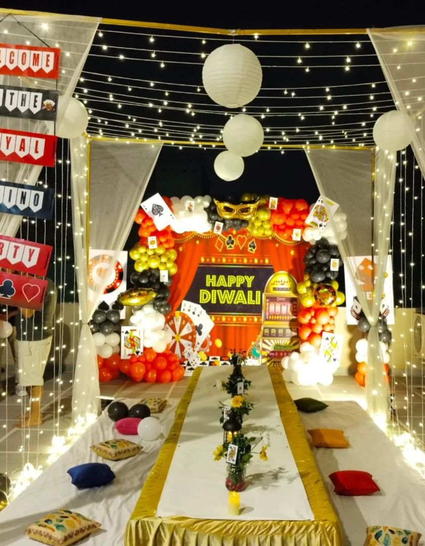We offer decoration for all types of Diwali celebrations, from traditional home pujas to glamorous card parties. Our services include classic flower decorations with marigolds and diyas, as well as modern themed setups with sequin walls, neon signs, and balloon arrangements.