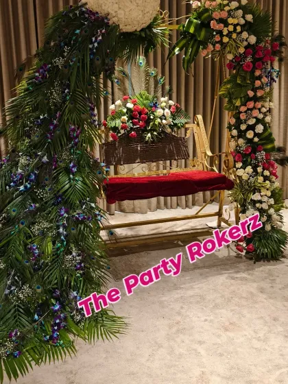 We create stunning setups for Teej, specializing in beautifully decorated swings (jhulas) that become the centerpiece of your celebration. We use a mix of real flowers, colorful drapes, Rajasthani umbrellas, and custom welcome signs to bring the festive spirit to your home or venue.