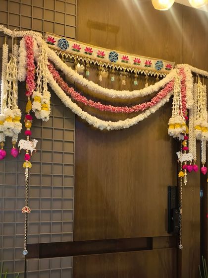 Traditional Function Decor - Teej, Sunderkand Path, Janmashtami - traditional setup bhi milta hai, mood bilkul festive.