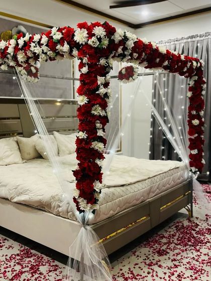 I create unforgettable 'Welcome Bride' and newlywed room decorations to make your first moments as a married couple truly special. My service includes everything from floors covered in rose petals and beds adorned with floral canopies to custom neon signs with your names and magical fairy light arrangements.