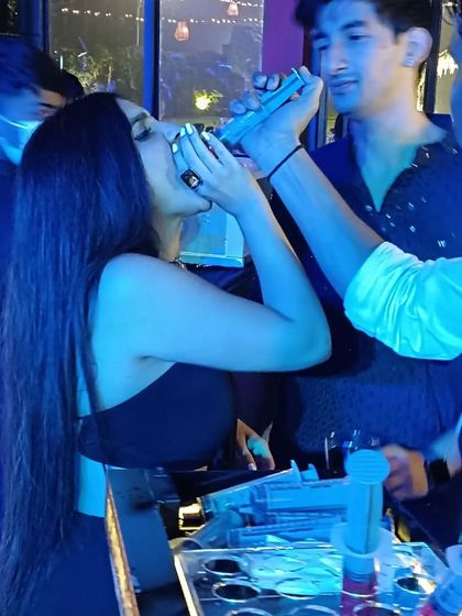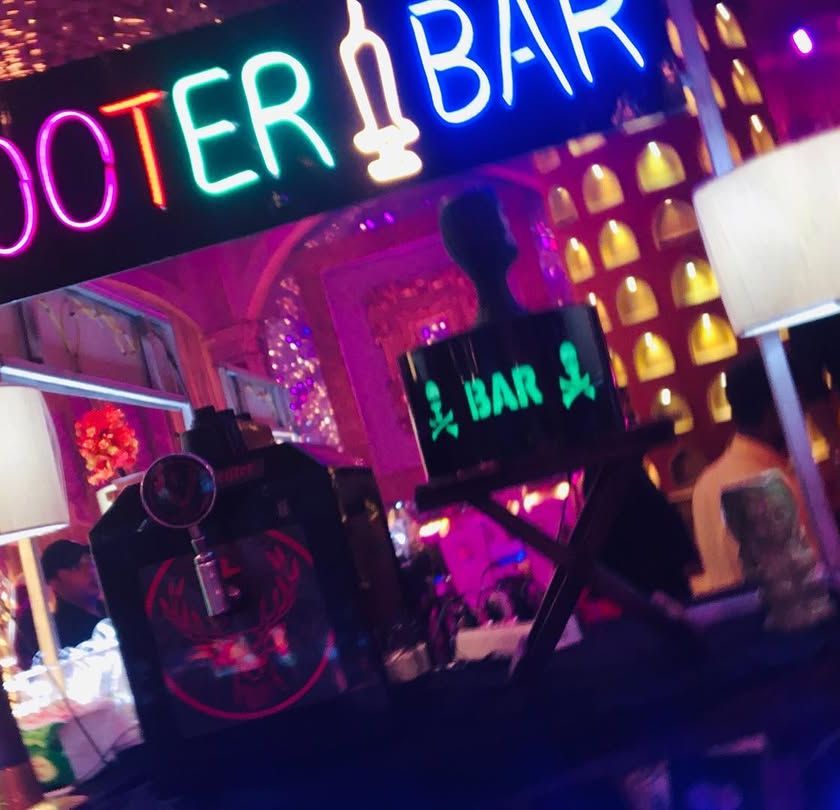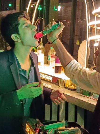I set up a dedicated zone to keep the party energy high. I offer a variety of fun shots, including some served in giant syringes for a wild and memorable experience that your guests will love.