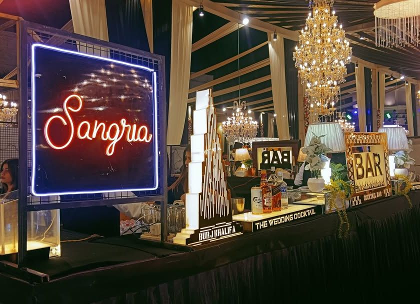 I create dedicated corners for every taste, ensuring all your guests find something they love. This includes fresh Sangria bars with red and white wine options, 'Gin O' Clock' stations for gin lovers, and classy Whiskey bars for connoisseurs.