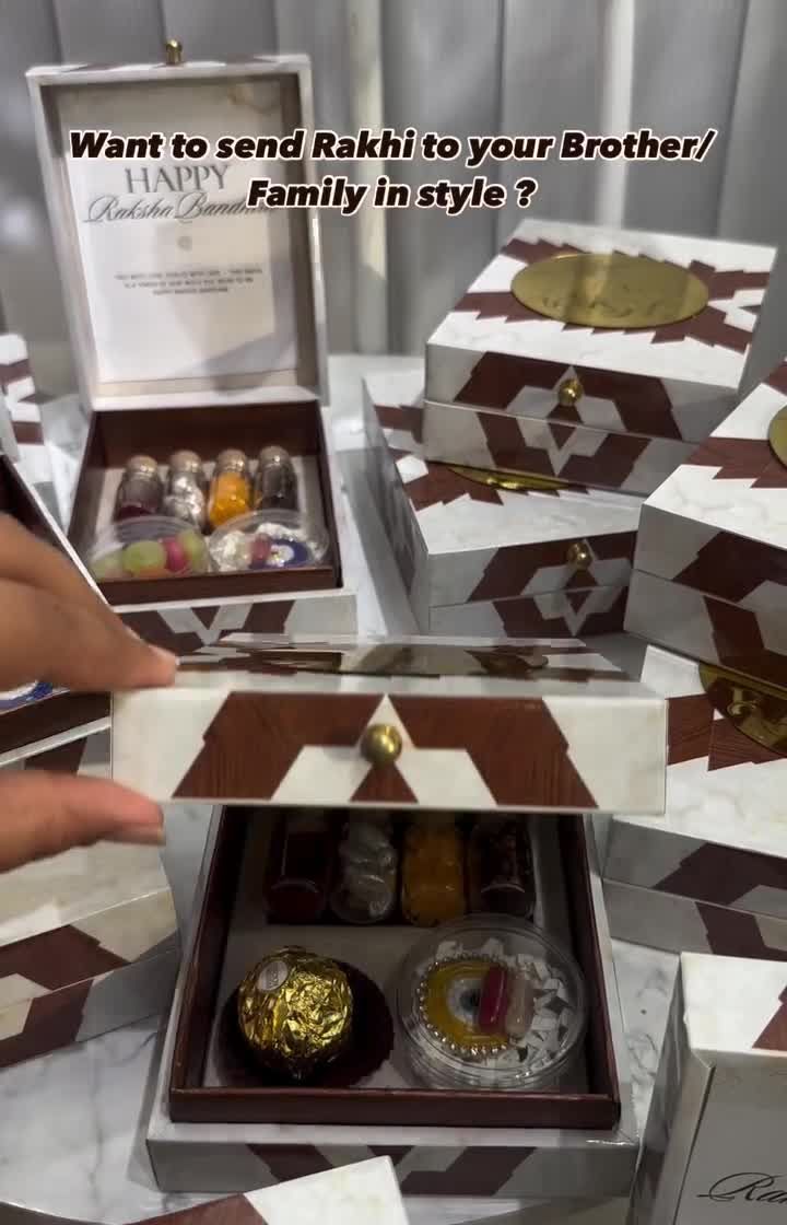 For Rakhi, I love mixing tradition with fun. This collection features everything from quirky, personalized hampers for your dramatic sibling to elegant, courier-safe boxes for sending love across the miles. I also design beautiful trousseau-style platters for a bride's first Rakhi.