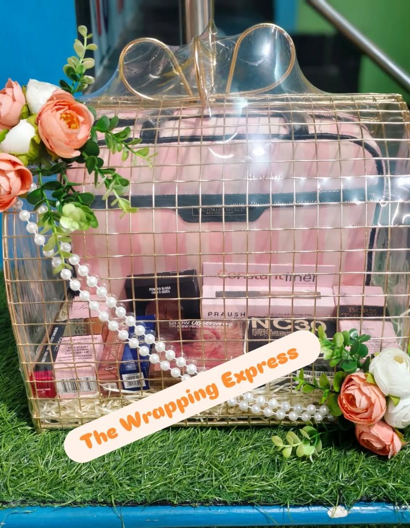 I can pack any gift you can think of, from cosmetics and accessories to dry fruits and clothes. I use a variety of materials like trays, baskets, and boxes, and decorate them with flowers, ribbons, and net to create a beautiful and personalized gift for any occasion.
