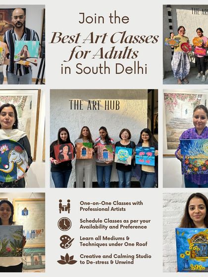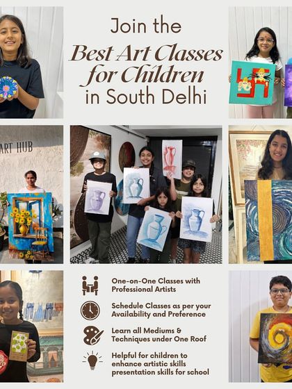 We’re The Art Hub, right here in South Delhi. Started by Bhavna, who’s been at this for 18 years. We’re not your regular art class - more like a family where 4-year-olds and 80-year-olds sit side by side, paint on their hands, and laugh a lot. Best part? Watching someone open that acceptance letter from a big-shot design college, knowing we helped them get there. That’s what keeps us going.