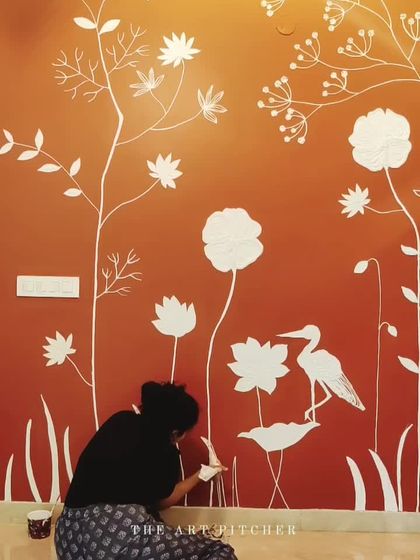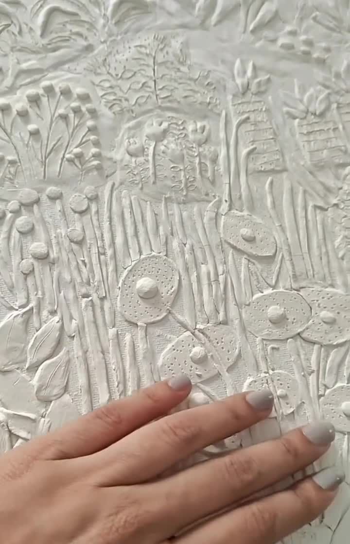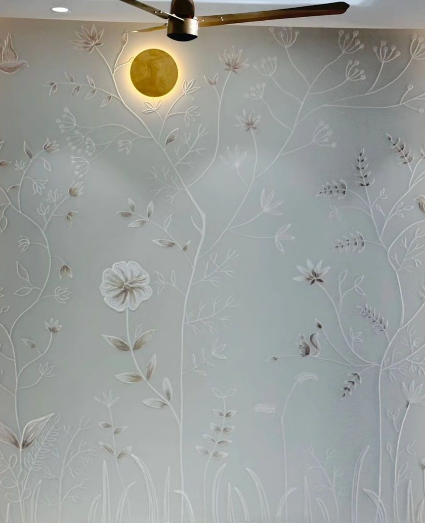 I transform spaces with nature-inspired, hand-sculpted designs created directly on-site. Each mural is a unique piece, designed to complement your home's specific architecture and lighting, whether you envision a subtle white-on-white texture or a more defined, colored botanical scene.