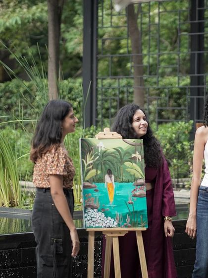 I paint live at events and run hands-on art workshops where anyone can join in, no experience needed, and I bring all the supplies anywhere in India.