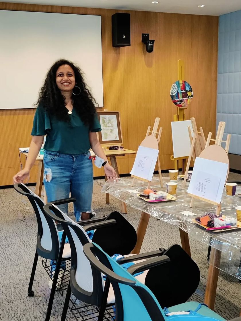 I offer interactive art sessions that serve as a creative escape from screens and daily routines, helping to boost team morale and foster collaboration. Teams can work together on a large group mural or create their own individual paintings to take home.
