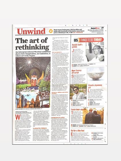 People call it an art class, but honestly, half the time it’s a drama school. I started this studio because copying pictures felt boring. Art’s about what’s in your head, how you see things. Like Manya—she mixed cyanotype printing and rock dogra, and boom, RISD scholarship. It’s not just me here; Kuldeep, Satendra, Lubaina, we’re a weird, happy family. Every year, ‘Re-Imagine’ shows everyone’s process, not just pretty stuff. This place? My happy spot, where ideas and people find themselves again.