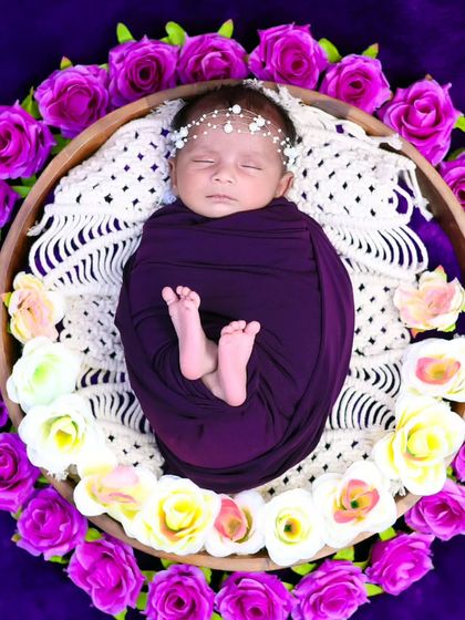 I specialize in capturing delicate moments of your newborn using artistic compositions and carefully selected props. My sessions feature cozy setups with knitted blankets, wooden bowls, and themed backdrops to create timeless portraits of your little one.
