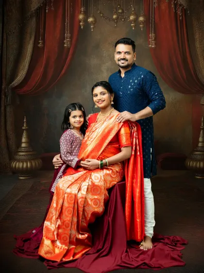 We do maternity photoshoots in our Thane studio with options for minimalist, themed, and Indian cultural styles, using professional lighting and a range of gowns for solo, couple, or family sessions.