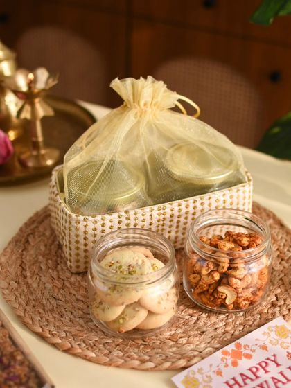 We craft luxurious gift hampers perfect for celebrations like Diwali and Rakhi. Our hampers feature handmade delights including spicy masala cashews, Kunafa pistachio brownies, rose kaju katli, assorted brownies, and chocolate truffles.
