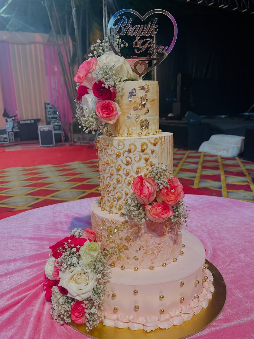 Your wedding or engagement cake is more than a dessert; it's the centerpiece of your celebration. I specialize in creating multi-tiered, elegant cakes, from classic floral designs in buttercream to grand, opulent structures that reflect your unique love story. All my cakes are 100% eggless, ensuring every guest can share in the sweetness.