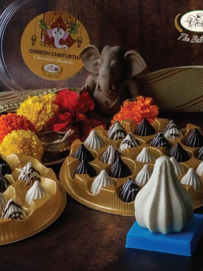 We offer a modern, indulgent twist on the traditional prasad with our signature Chocolate Modaks. Made with rich dark, milk, and white chocolate, they come in unique fillings like Coconut Jaggery, Hazelnut Almond, and Gulkand.