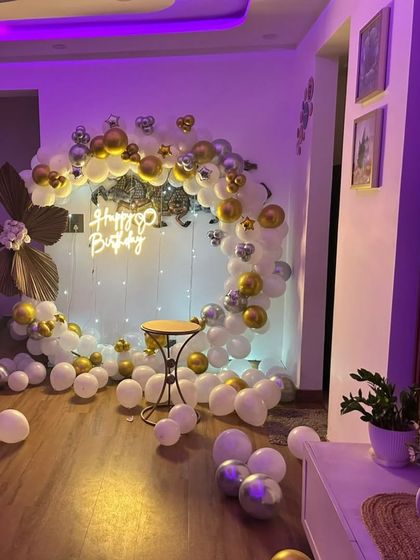 I provide decorations for corporate events, office parties, and store openings in Faridabad. This includes balloon arches for entrances, simple ceiling decor for office celebrations, and backdrop setups for product launches or festive events.