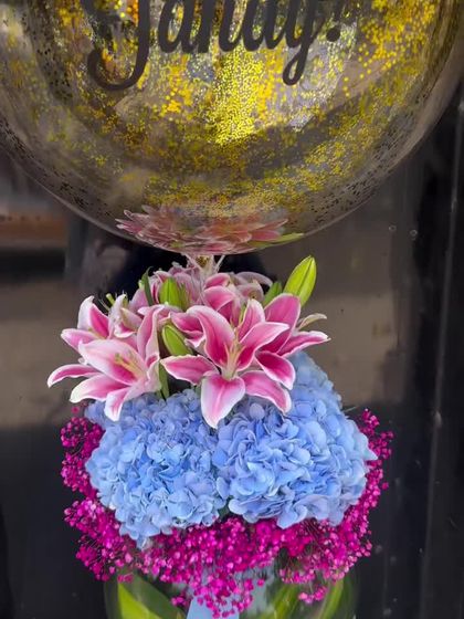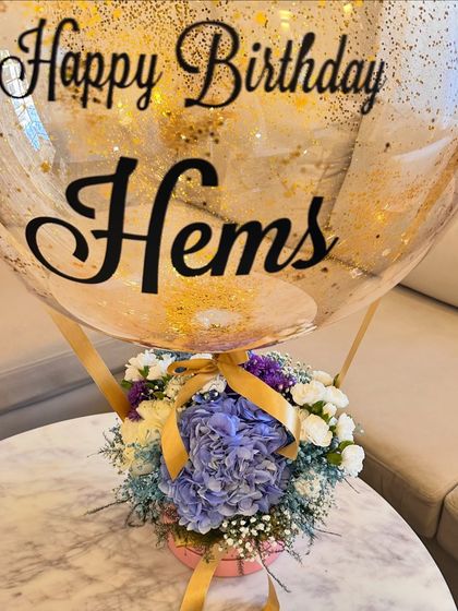 This is my most popular creation and what The Balloon Tales is known for. I combine a beautiful arrangement of fresh flowers with a large, personalized bubble balloon to create a whimsical hot air balloon effect that brings instant joy. They are perfect for birthdays, anniversaries, or just because.