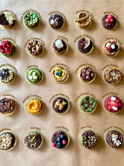 Cookies made with millet flour – just 55-85 calories each. Tiramisu jars (over 15 flavors, all vegan and gluten-free), cupcakes including special toddler-friendly options. All sweets use natural sweeteners (monk fruit, coconut sugar, jaggery, date syrup) and vegan creams.