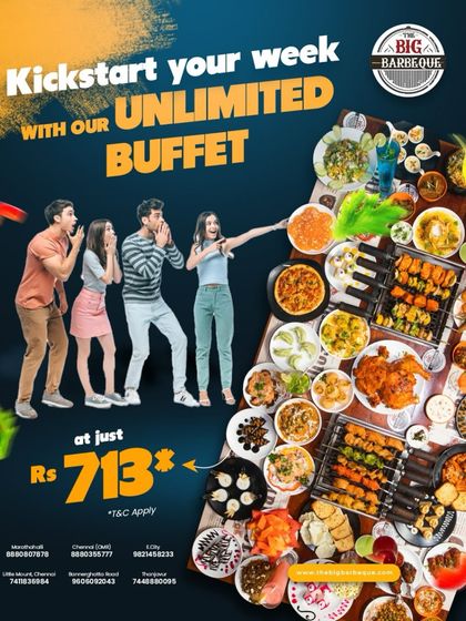 We started The Big Barbeque because, really, why pick just one thing when you can have it all? Our place is where birthdays, random Tuesdays, and big wins get celebrated with endless food, laughter, and that grill sizzle. Bangalore, Chennai - we’re part of the local buzz. Festivals, cricket wins, family get-togethers, we’re all in! Our promise? You’ll leave stuffed, smiling, and maybe already planning your next visit.