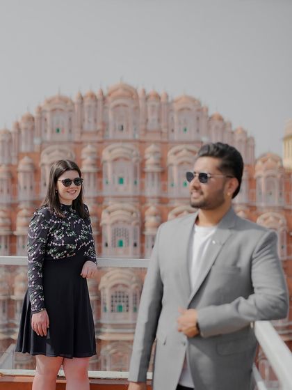 We specialize in capturing romantic pre-wedding moments at iconic locations across Jaipur and Udaipur, including historic landmarks like Amer Fort, Hawa Mahal, and scenic Rayta Hills.