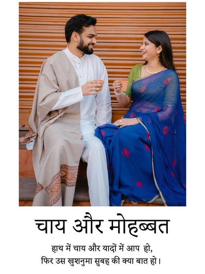 We don’t do stiff poses. We chase real feelings. Expect lots of candid couple photography - the shared chai aur mohabbat (tea and love), the random laughs, and even the awkward giggles. Our videos? More like a cinematic pre-wedding film with music that makes you feel all the feels. Golden hour portraits are our jam; that dreamy light just before sunset is unbeatable.