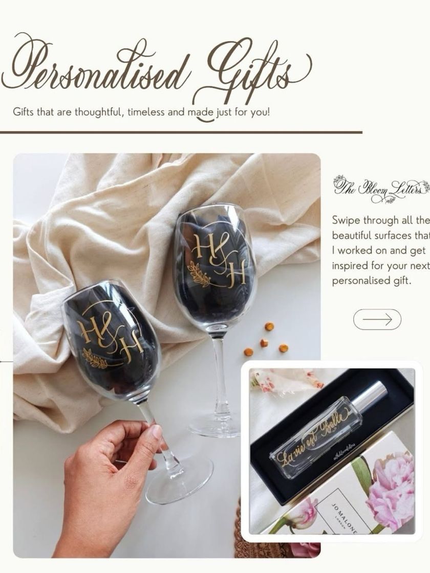 I specialize in transforming elegant glassware into timeless keepsakes for your most cherished moments. From wedding champagne flutes with custom monograms and dates to personalized wine glasses and tumblers for anniversaries, each piece is hand engraved to capture the spirit of your celebration.