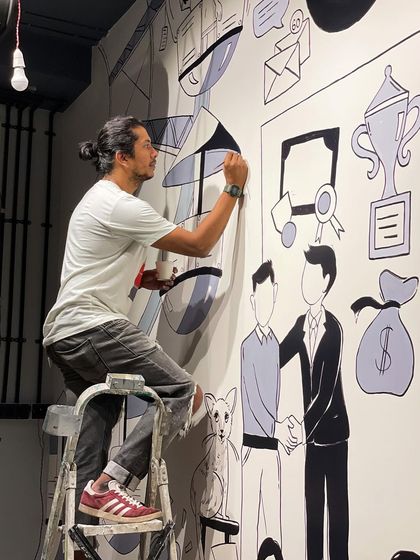 I turn boring, blank walls into spaces that actually feel alive. My thing is doodle mural designs, so expect detailed line work, quirky characters, and icons that connect into a bigger picture. Whether you want something bold for your office or a chill vibe for your cafe, we’ll figure out what fits the mood of the space.