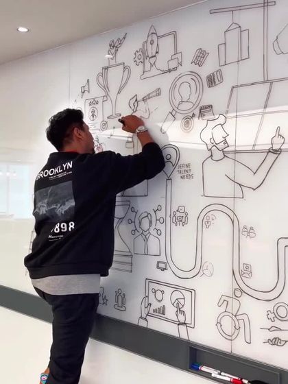 - Technique: Real-time visualization, sketch-noting of live talks, or pre-planned mural execution.