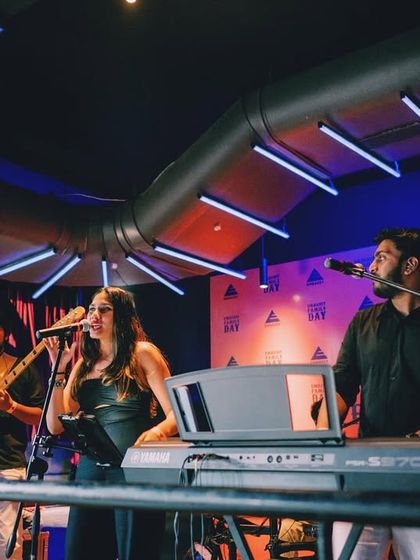 We specialize in delivering high-energy live band performances for corporate events. Our seven-piece ensemble, featuring dual vocalists and a diverse instrumental lineup, creates an engaging atmosphere through a fusion of rock, pop, retro, and Bollywood music.