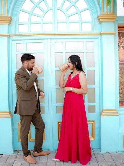 Get the feel of a European destination wedding without leaving Pune. This popular set, with its iconic white and blue architecture, provides a stunning and versatile backdrop for a chic, modern, and romantic pre-wedding or engagement shoot.