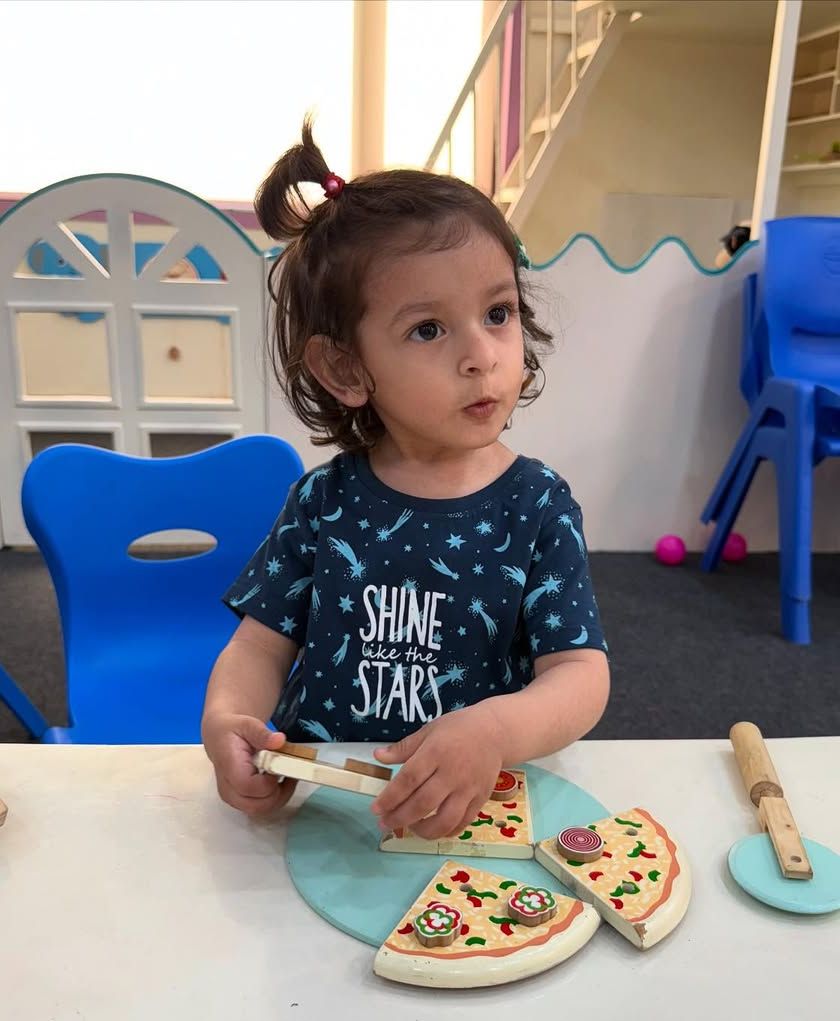 We nurture every child's imagination through a world of creative expression. This includes everything from sensory art and themed crafts to immersive role-playing scenarios like our 'Life Studio' Pizzeria, where children learn practical skills while having fun.