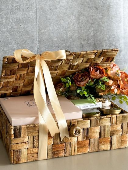 We believe the joy of a gift starts with the unboxing. Our treats come in a variety of beautiful, reusable packaging, including wicker trunks, handcrafted baskets, wooden trays, and floral boxes that serve as a lasting memory.