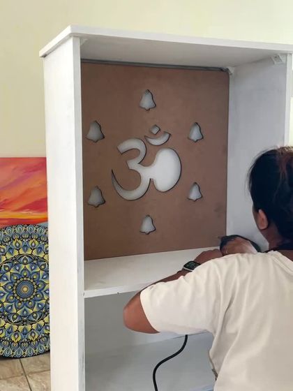 This was a special project, turning a simple cupboard into a fully functional Puja unit for my home. It involved everything from collaborating with a carpenter and installing lighting to adding detailed Lippan art, creating a truly personal and sacred space.