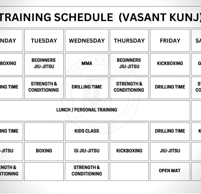 Here are our current training schedules for the Vasant Kunj location and other important announcements. Check here for the latest class timings for Strength & Conditioning, Jiu-Jitsu, MMA, and more.