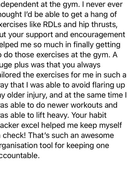 Hear directly from the women I've worked with. They share how they overcame gym anxiety, healed their relationship with food, and built confidence through my supportive and educational coaching approach.
