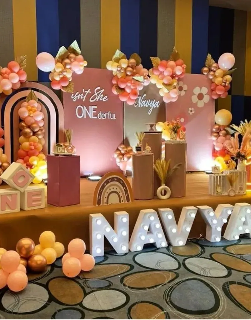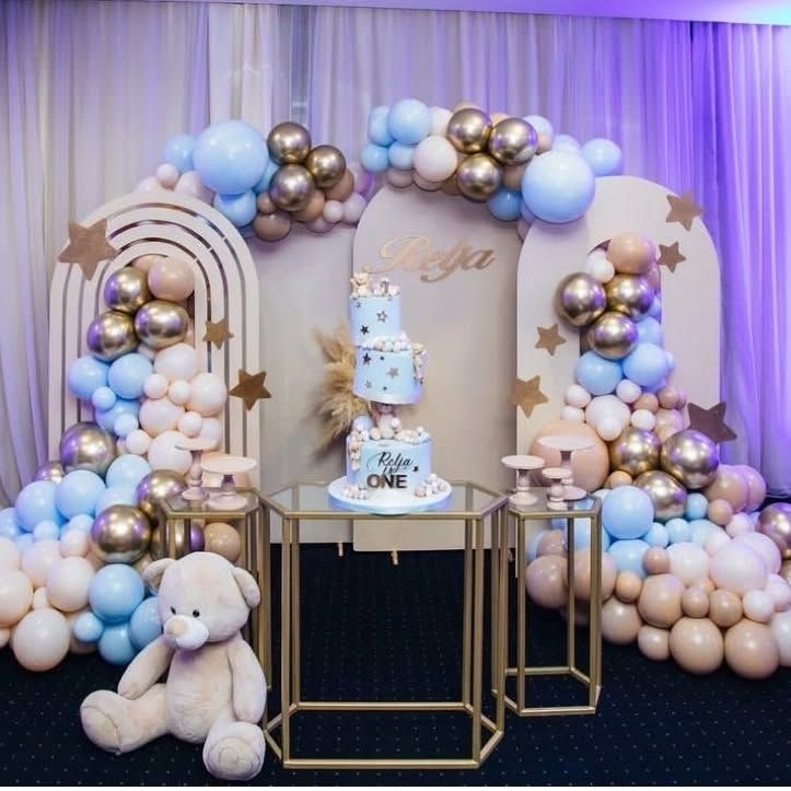 For a sophisticated and stylish event, we offer modern and bohemian-inspired decor. These designs feature elegant balloon arches in muted tones, chic backdrops with custom lettering, and natural elements for a timeless and trendy celebration.