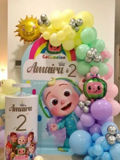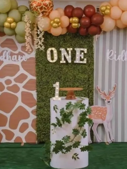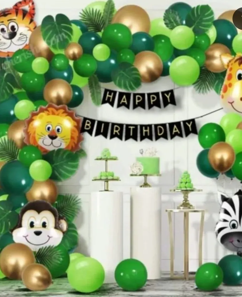 Let your little one go on a wild adventure with our jungle and animal themed decorations. These setups feature lush green backdrops, fun animal character balloons, and rustic elements to create an immersive safari or woodland experience for your child's birthday.