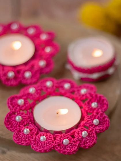 We create handmade crochet decor pieces that add warmth and character to your living spaces. Our collection includes intricately designed coasters with sunflower and heart patterns, detailed candle holders perfect for festivities, and customizable cushion covers featuring delicate lacework.