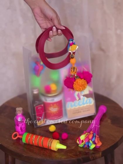 My Holi hampers are designed to be as colorful and joyous as the festival itself. I pack them with essentials like organic gulaal and pichkaris, along with fun treats and thoughtful details, all presented in unique and festive packaging like wooden thelas and vibrant baskets.