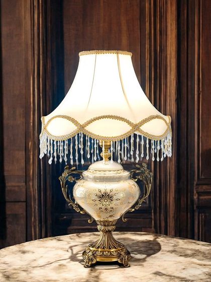 I have a deep appreciation for timeless, old-school charm, which is reflected in this collection. These Victorian-style lamps feature ornate bases made of fine porcelain and brass, with details like beaded fringe and intricate patterns that tell a story of classic beauty.