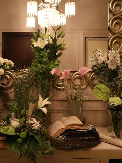 - Floral Accents: Minimalist, premium floral arrangements (Lilies, Orchids, Gypsophila) in glass vases or styled with vintage props.