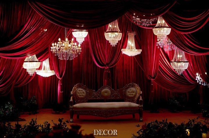 We specialize in creating dramatic and opulent atmospheres for engagements and receptions. This collection showcases our use of rich red velvets, magnificent crystal chandeliers, and strategic lighting to design spaces that feel both grand and deeply romantic.