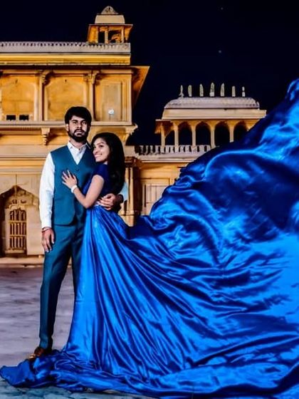 We rent over 1000 styles of pre-wedding and couple photoshoot outfits, including flying gowns, flying sarees, and coordinated sets for both men and women, with pan-India shipping.