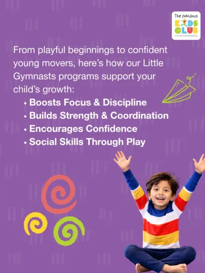We run hands-on gymnastics classes for kids aged 2 to 4 where they climb, jump, and balance on soft equipment to build motor skills, confidence, and social skills in a safe, screen-free space.