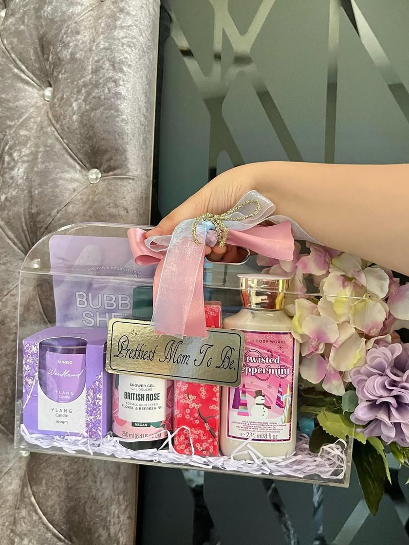 We design these super chic, modern acrylic bags that are perfect for making a statement. Each hamper is fully customizable with luxury goodies, flowers, and personal touches for any occasion, from birthdays to baby showers.