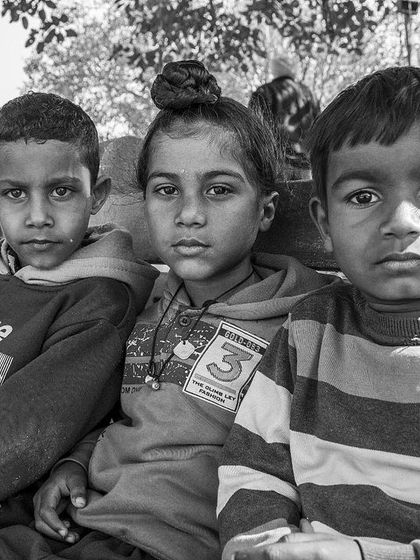 I often use black and white to strip away distractions and focus on emotion, texture, and light. This gallery features a selection of my monochrome street portraits, primarily capturing the unfiltered expressions of children in Punjab.