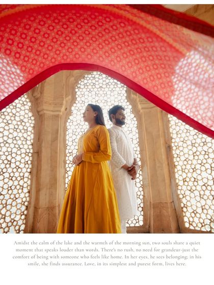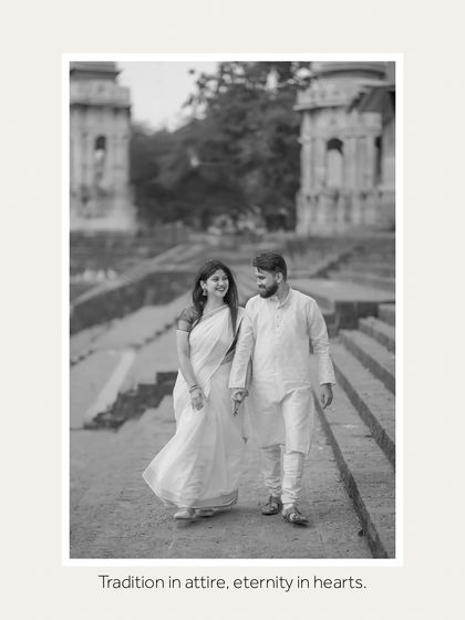 I love weaving cultural elements into pre-wedding shoots to create something truly personal and timeless. This collection features couples in beautiful traditional attire at heritage locations like Banganga Tank, celebrating their roots with elegance and grace.