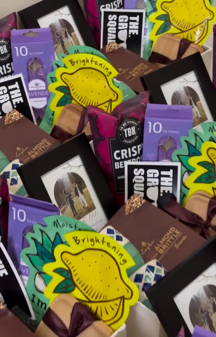 Thank your bridesmaids and groomsmen with personalized hampers they'll love. Our squad boxes are packed with fun and useful items like custom photo frames, snacks, and grooming essentials, all elegantly packaged with personalized name tags.