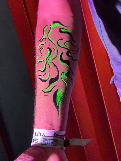I create custom glitter looks, rave face paint, and temporary tattoos for parties, festivals, and weddings. I also offer an interactive glitter bar to make your event shine.