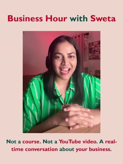 Book a 60-minute, one-on-one video session with our co-founder, Sweta, for straight-up, honest business advice. We cover everything from scaling and marketing to team issues, providing a confidential space to solve problems and find clarity.