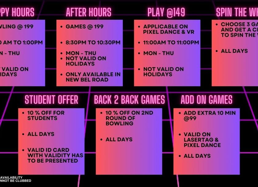 We believe fun should be accessible, which is why we have a range of offers to make your experience even better. Check out our weekday happy hours, student discounts, and loyalty programs to get more game for your buck.